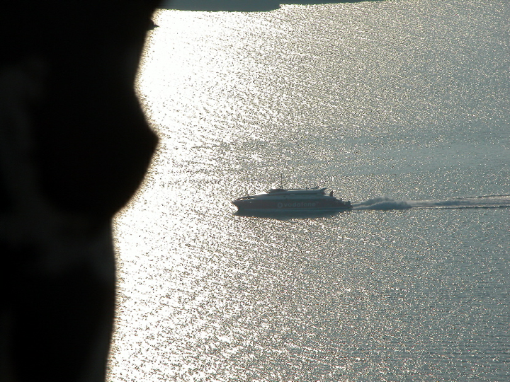 Santorini - Venus de Milo with the Hellenic Seaways Flying Cat in the distance