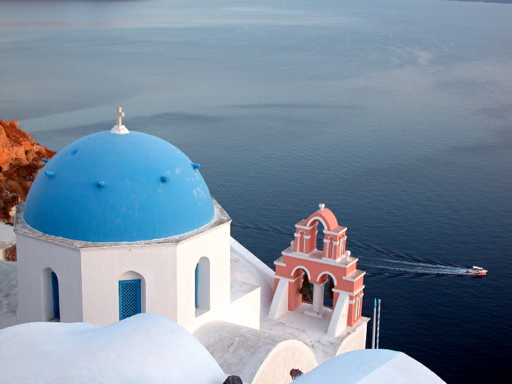 Santorini - Classic church view over cliff in Oia