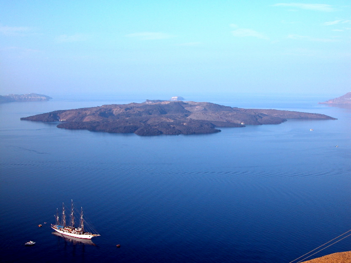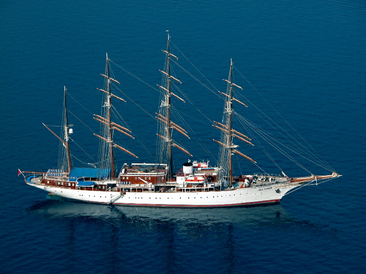 Santorini - Caldera view with the Sea Cloud down below