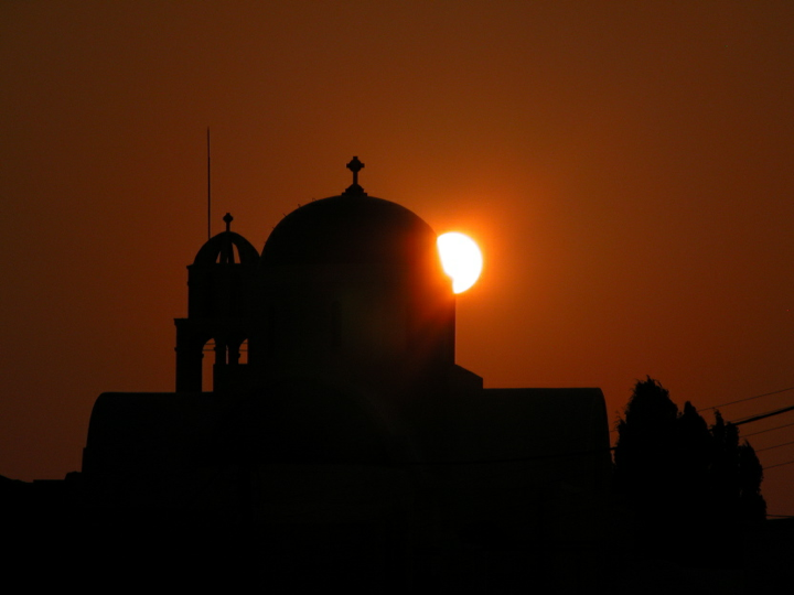 Santorini - Sun setting behind church in Oia