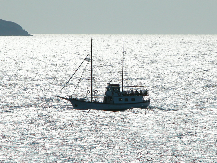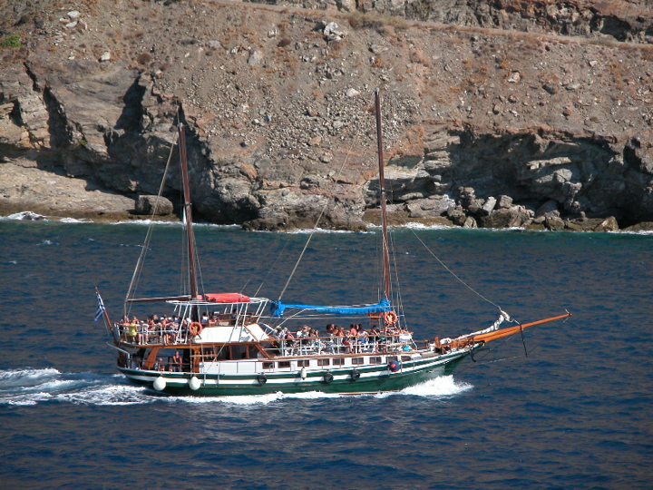 Santorini - Adonis cruise boat returning from a daily excursion