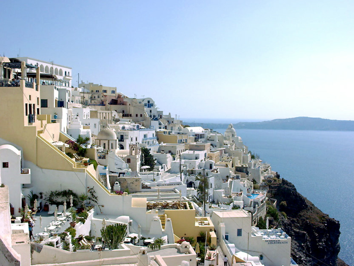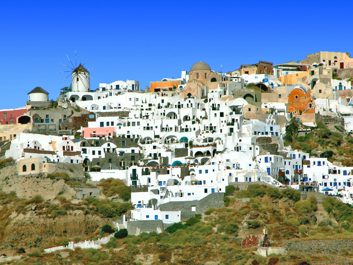 Santorini - View of Imerovigli with Oia in the background
